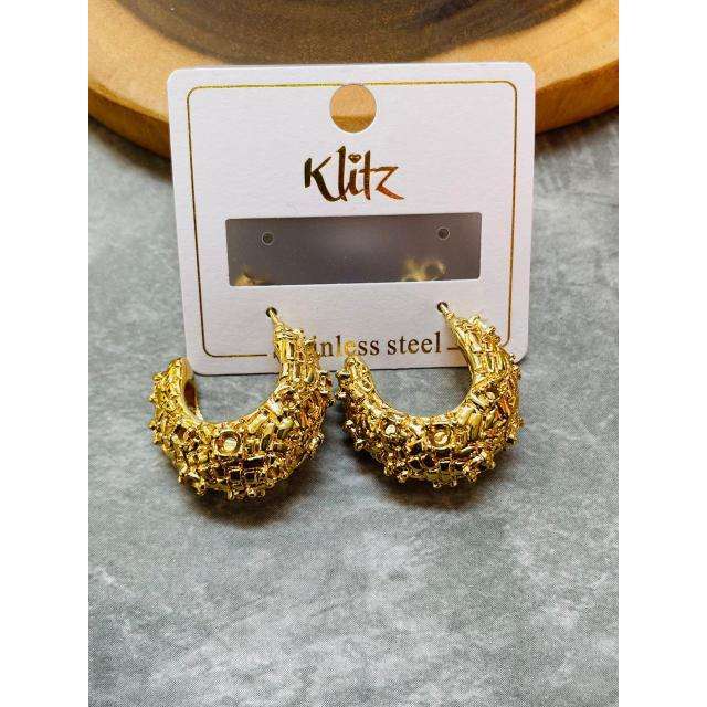 Pendientes Gruesos en Forma de C de Acero Inoxidable Plateado con Superficie Irregular, Textura Martillada con Perla Principal