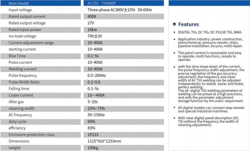 Nombre del producto:Soldador de Aluminio AC DC TIG