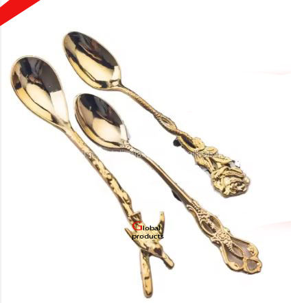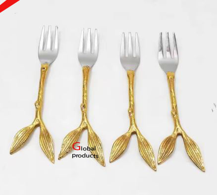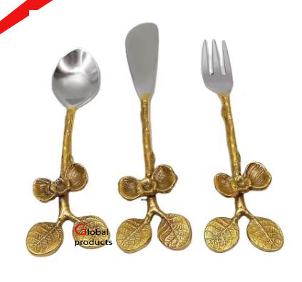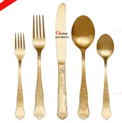 Cubiertos de acero inoxidable de diseño de tendencia con hoja dorada y mango de diseño floral para restaurante y bar de hotel