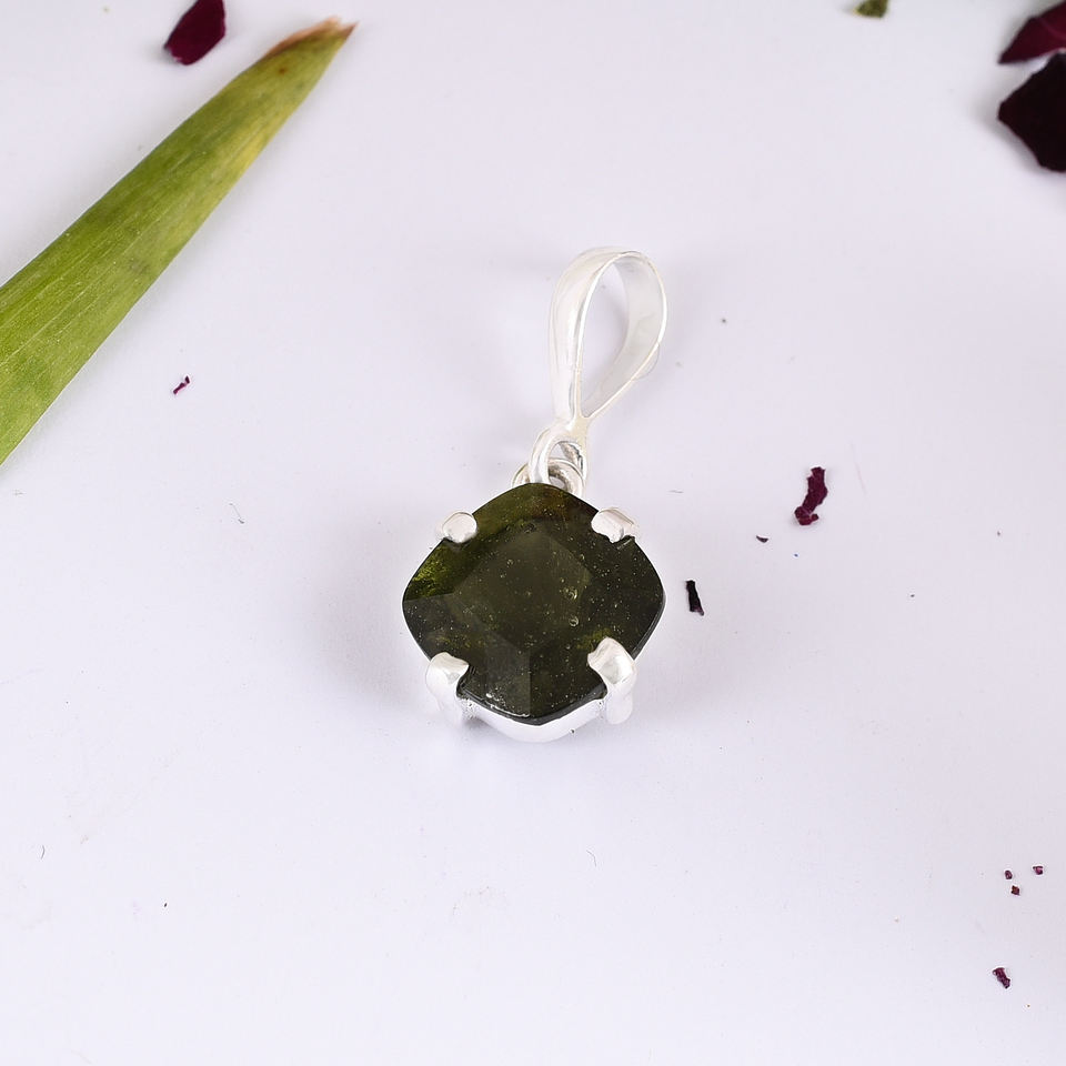 Exclusivo Colgante de Moldavita Hecho a Mano en Plata de Ley 925, Joyería Moderna Unisex, Regalo de Boda