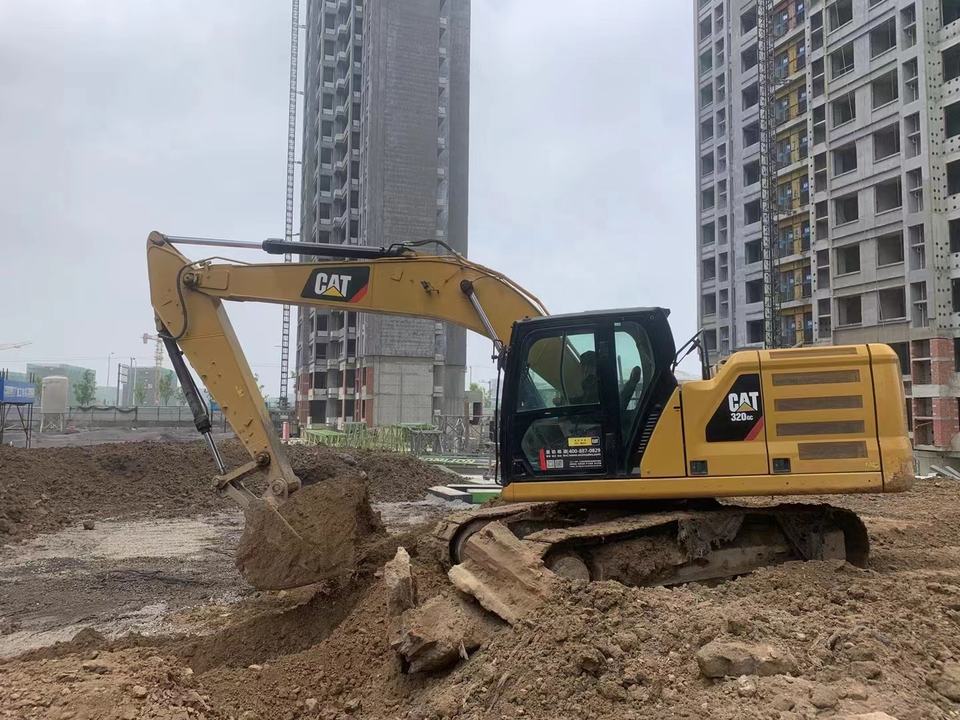 Excavadora:Equipo pesado de construcción excavadora sobre orugas