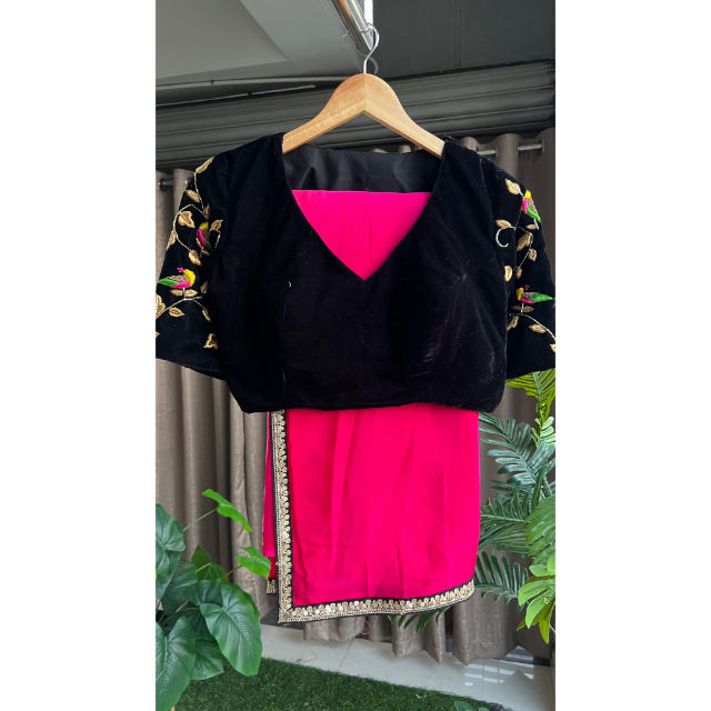 Blusa de terciopelo para Sari o lehenga con detalles únicos Blusa de terciopelo suave y elegante para mujer con lentejuelas