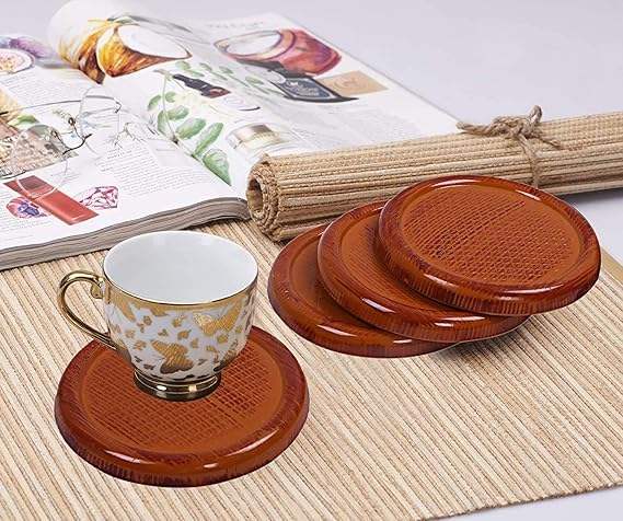 Posavasos de alta calidad Juego de 4 posavasos de madera de mango natural Estilo clásico Venta caliente Juego de posavasos de madera de 4 piezas