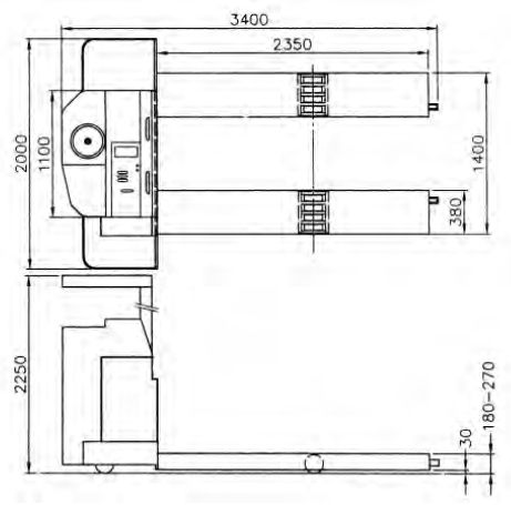 Radio de torneado de la carretilla elevadora:2400mm, 2170 mm, 1950 mm, 2240 mm