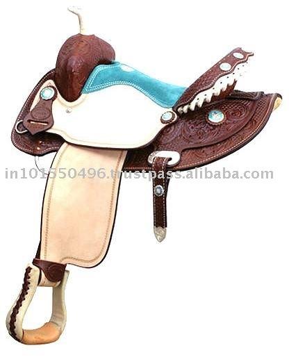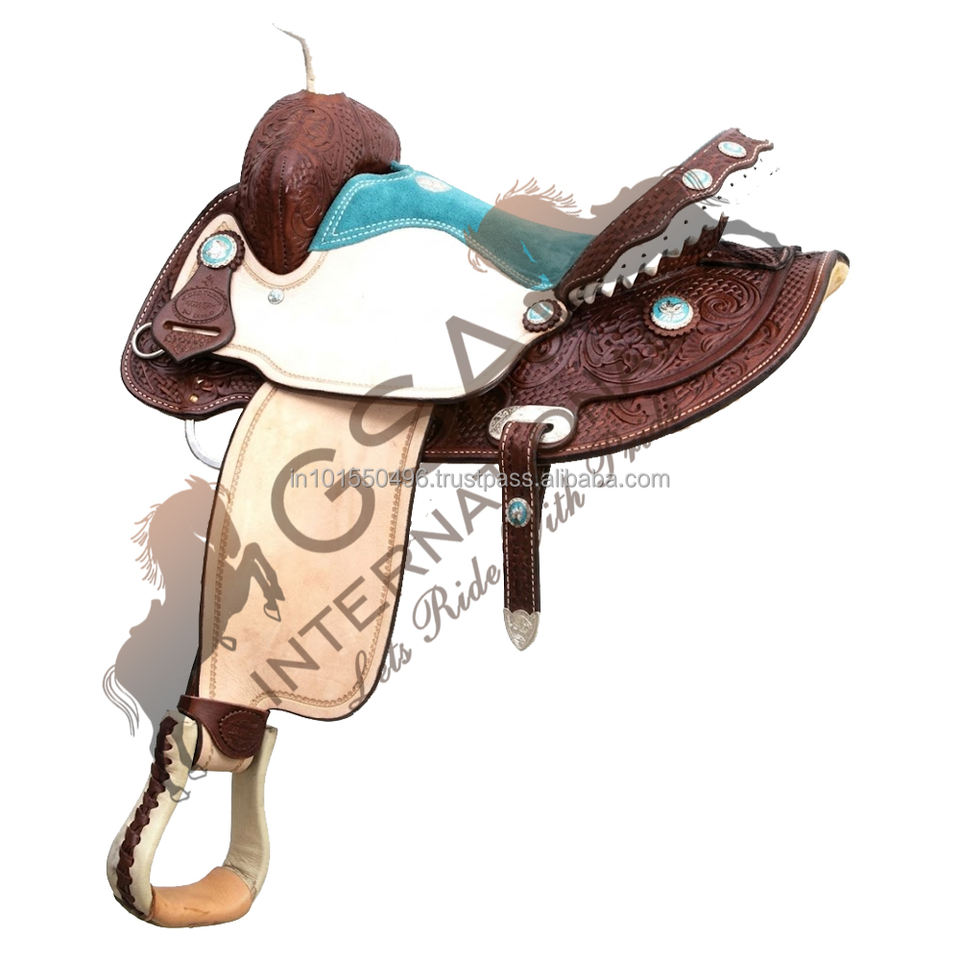 Silla de montar western 100% cuero genuino, tamaño personalizable, para equitación y entrenamiento, a precio de fábrica.