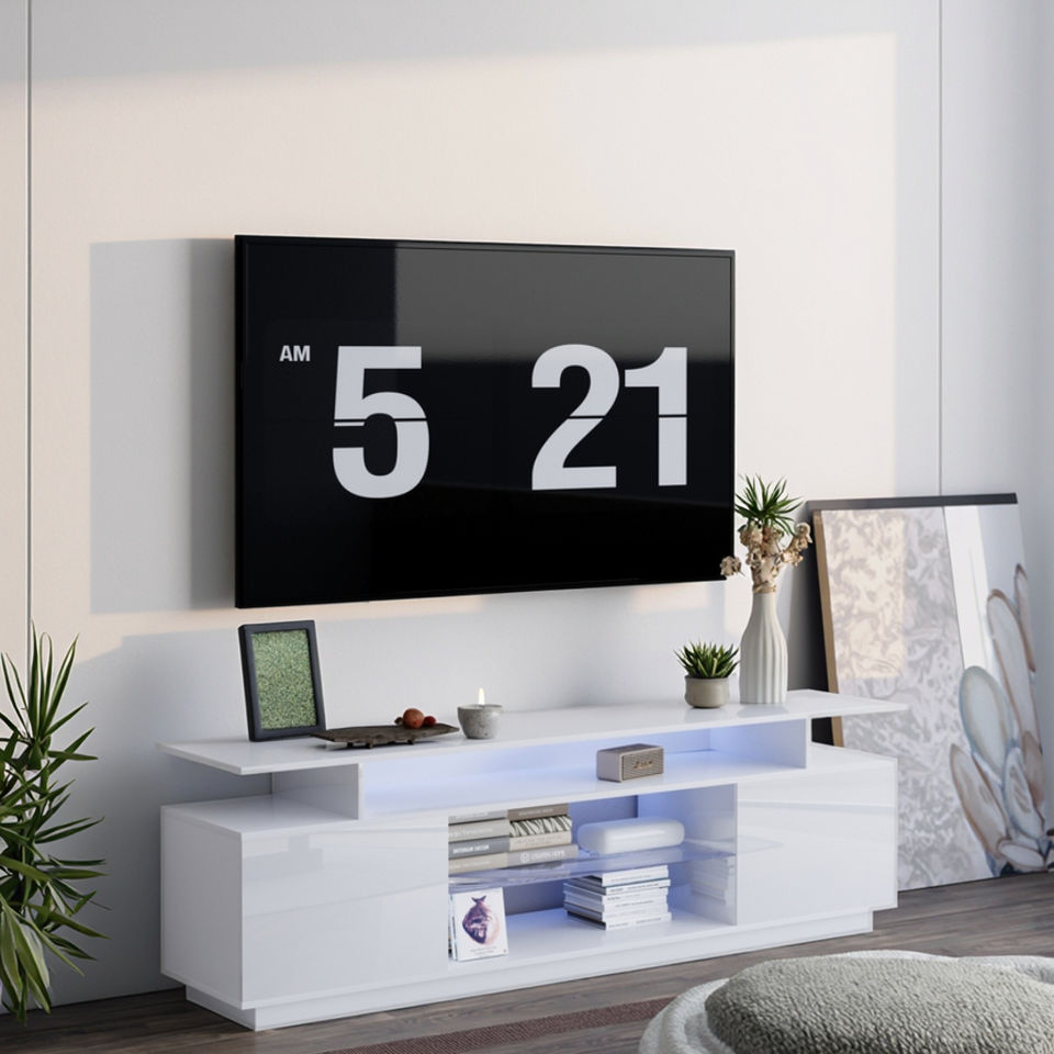 Mueble de TV moderno de 86 pulgadas, soporte de madera en blanco y negro, luz LED, mesa ancha delgada para el hogar, Hotel, elegante sala de estar, almacenamiento de muebles