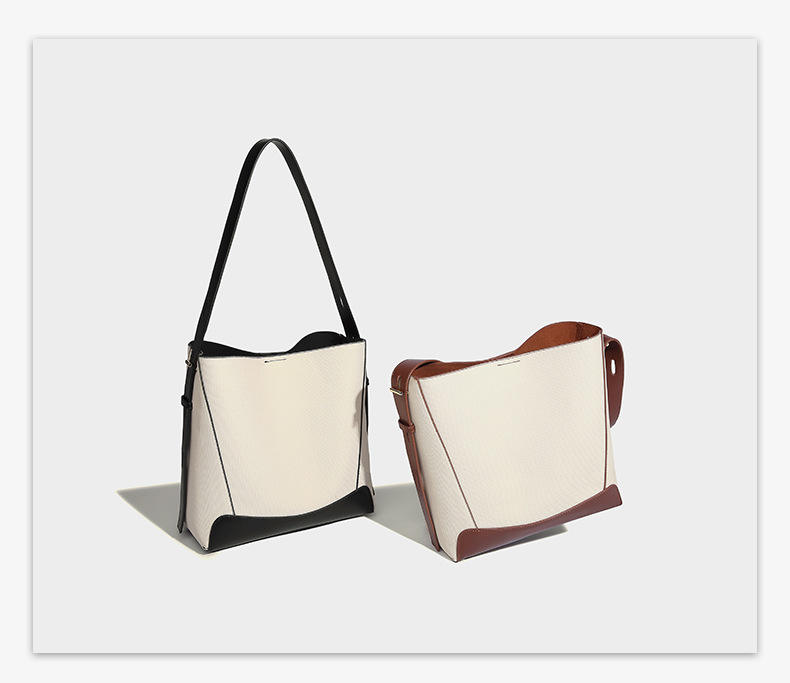 Bolso bandolera de lona y cuero blanco Estilo casual sencillo