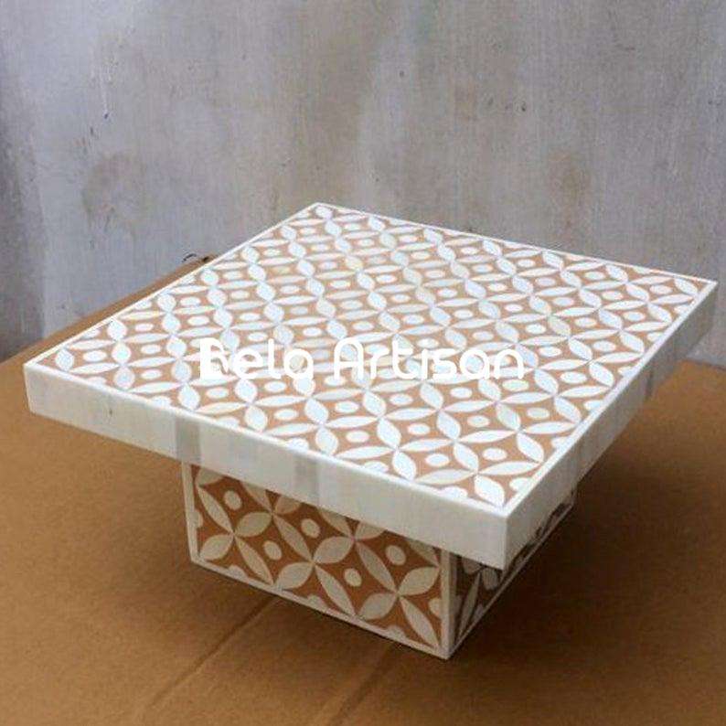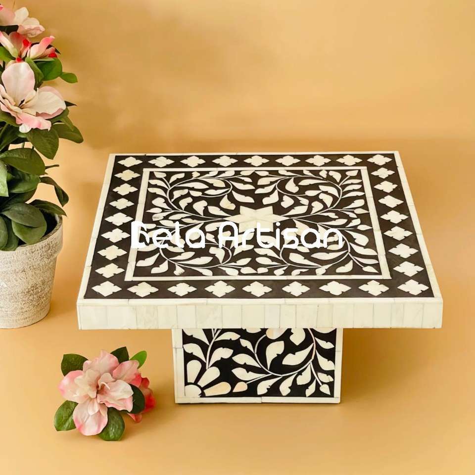Exhibición de vajilla de soporte de pastel de madera artesanal de lujo al por mayor con herramientas de pastel decorativas superiores redondeadas