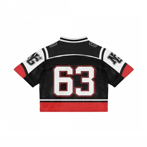 Jersey de béisbol de malla de algodón personalizado al por mayor, camiseta cuadrada con estampado de rayas de punto, camiseta de malla recortada con cuello en V de gran tamaño
