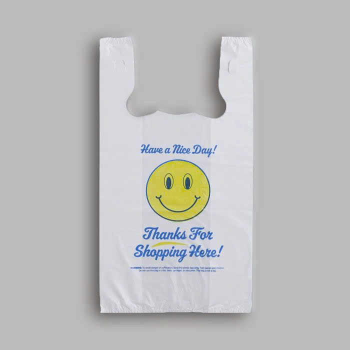 Venta al por mayor de impresión personalizada camiseta de polietileno comestibles bolsas de plástico para el supermercado con el logotipo de bolsas de compras de plástico