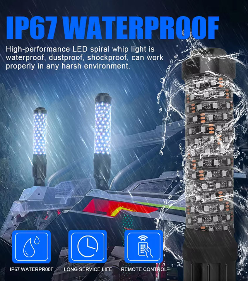 Con aplicación y control remoto LED Fat Whip Lights 3FT RGB Fat Antenna Whip Light para Jeep UTV ATV Off-Road RZR Polaris Truck Can-Am