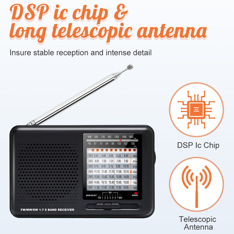 Mini radio portátil de bolsillo 9 radio multibandaNombre del producto
