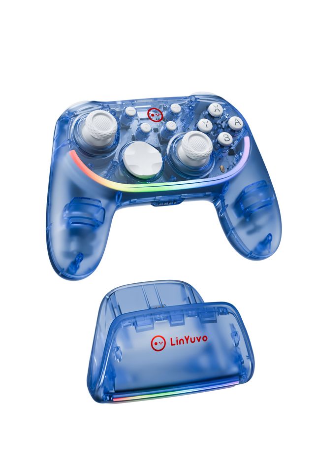 Control de Juego Inalámbrico LinYuvo para Switch con Motores Duales, Giroscopio de 6 Ejes, Función Turbo y Base de Carga