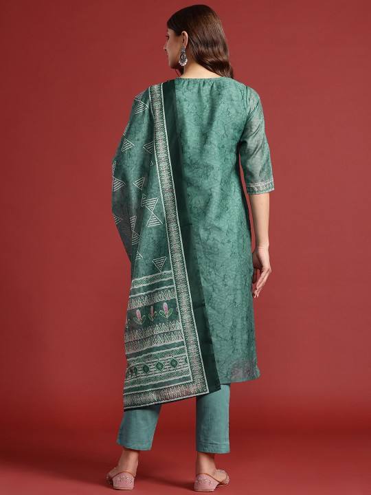 Mujeres étnicas Indie Prints poliéster Kurta con pantalones y Dupatta indio pakistaní Salwar kameez traje