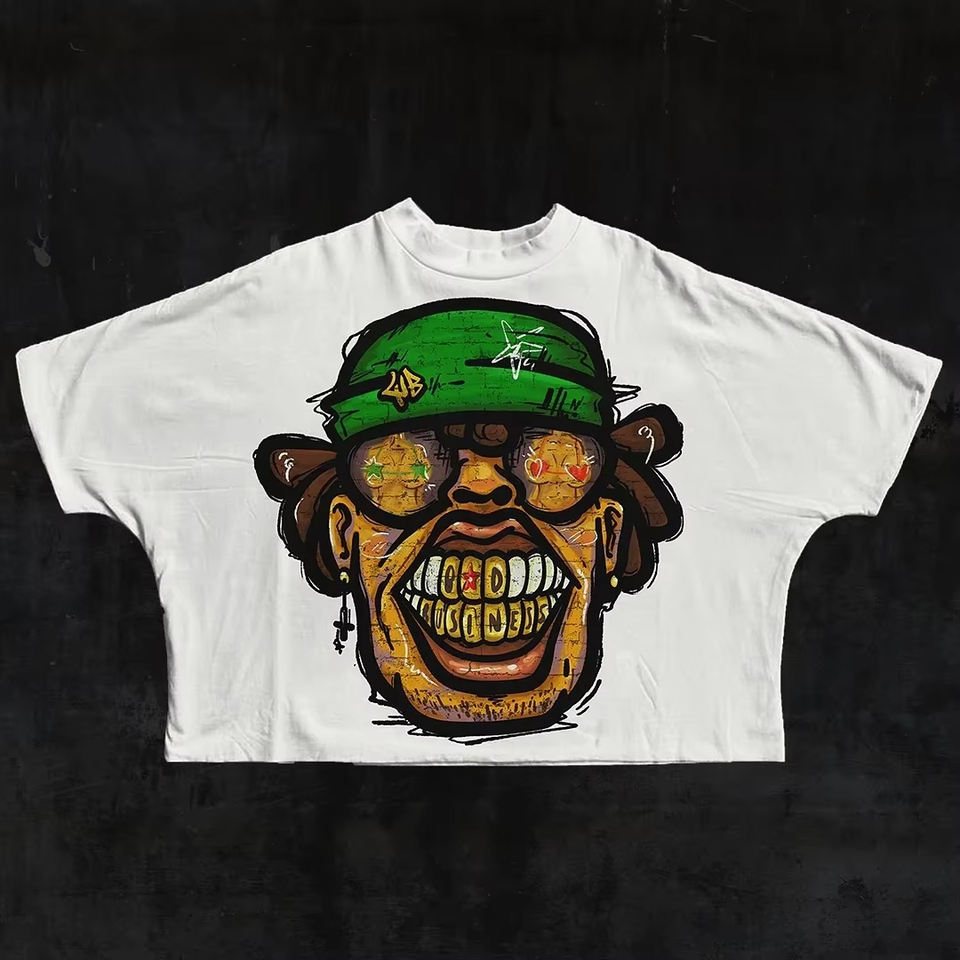 Camiseta y2k extragrande de 2 paneles con corte cuadrado para hombre, 100% algodón, hombros caídos, estampado gráfico DTG personalizado, camiseta cuadrada para hombre