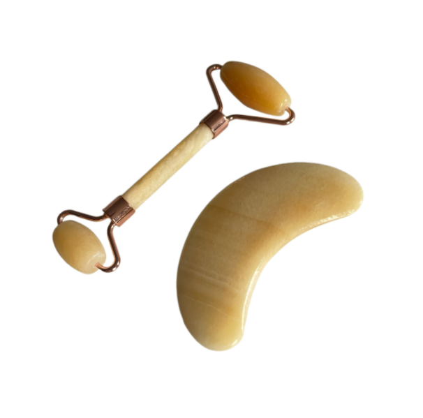 Juego de rodillos gua sha de jade amarillo herramientas de belleza para reducir arrugas