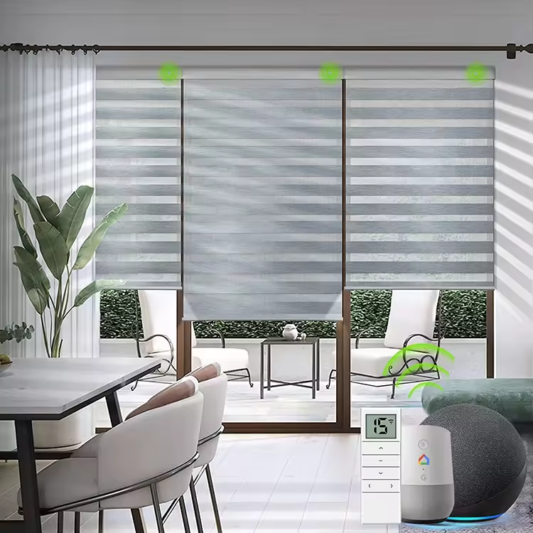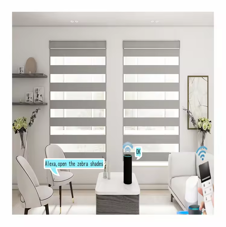 Nombre:Persianas zebra personalizadas automáticas grises día y noche para ventanas en Canadá